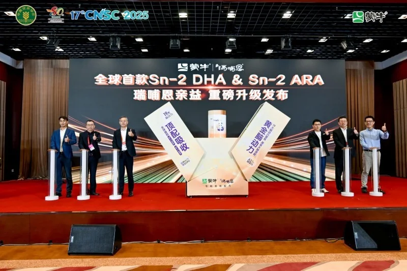 在婴幼儿营养领域,蒙牛亮相了全球首款Sn-2 DHA & Sn-2 ARA婴配粉——瑞哺恩亲益3.0全新升级。江南大学教授王兴国在报告中指出,通过发酵条件优化和脂质重构精准地将DHA和ARA酯化在Sn-2位,更贴近乳脂结构。动物实验结果表明,摄入Sn-2位DHA的实验组,其大脑组织中DHA的积累水平显著提高,并在认知行为测试中表现出色。Sn-2位技术同样显著提升了ARA的吸收与利用效率。两者协同能为婴儿脑发育提供更高效的营养支持。